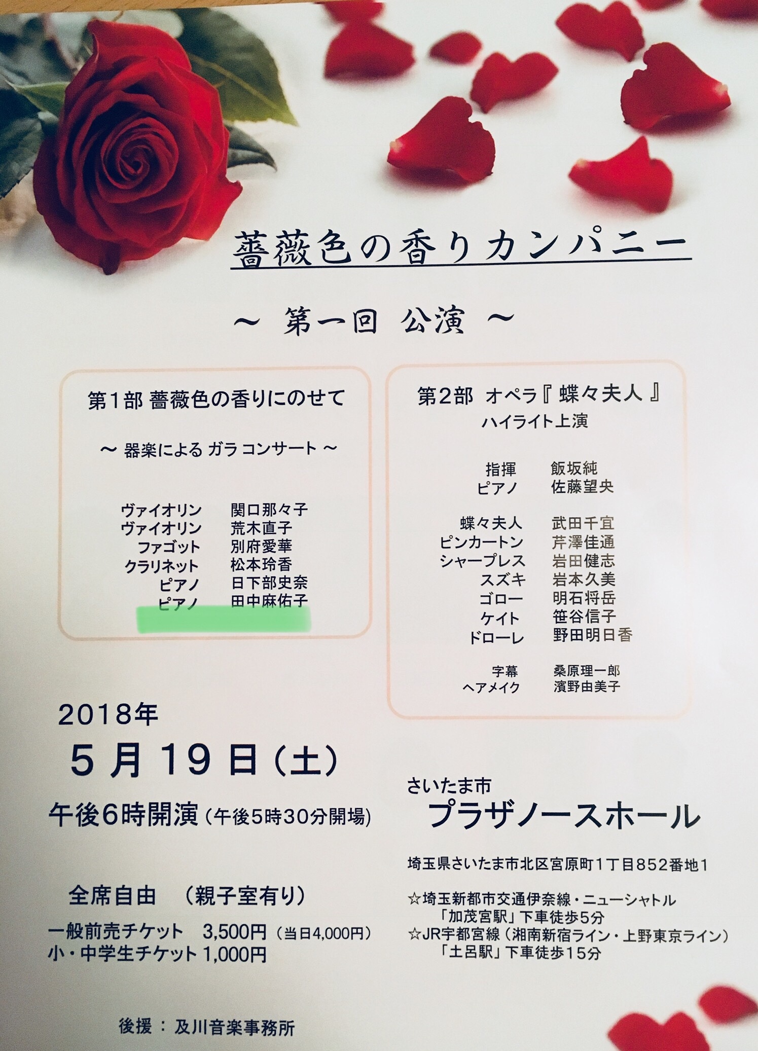 3ヶ月後の5月19日土曜日、さいたま市のプラザノースにて、ガラコンサートに出演いたします。