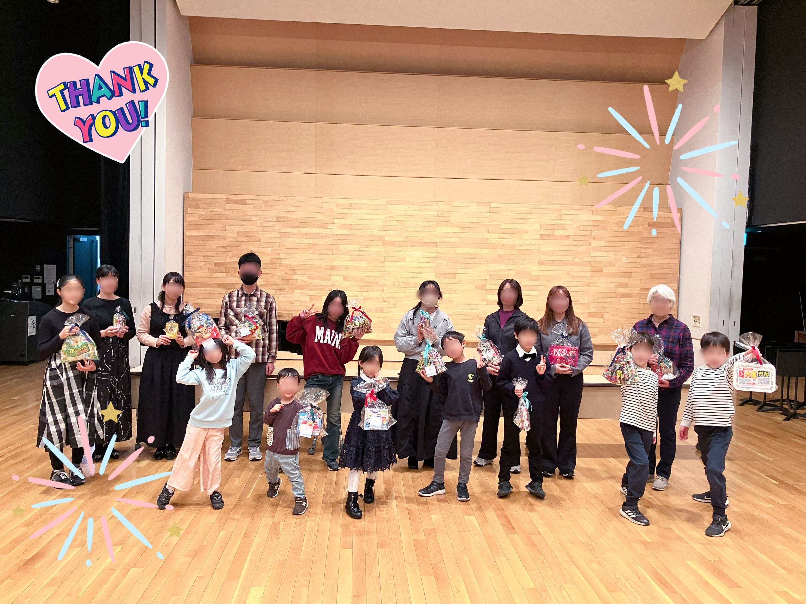 大人組のあたたかい優しさにより、それぞれお目当ての景品をゲットした前衛年少組の個性あふれる決めポーズのお写真がこちらです。花丸100点!