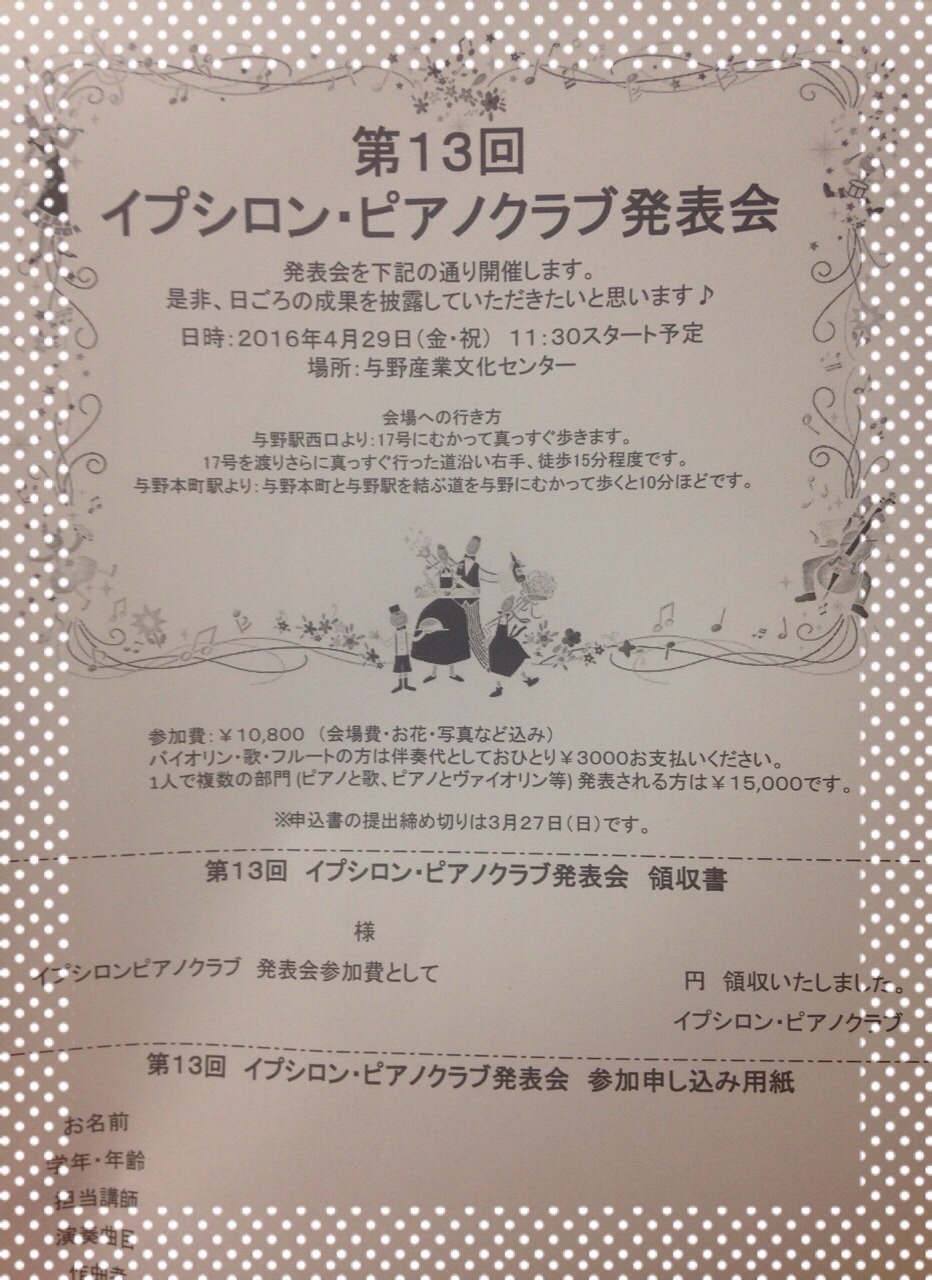 さて、今週から発表会のお知らせが配布されます。